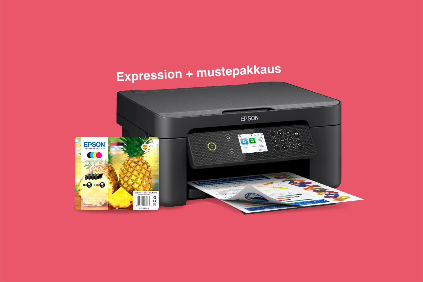 Osta kampanjaan kuuluva Expression-tulostin yhdessä Epson-monivärimustepakkauksen kanssa 01.10.2025–31.01.2026 välisenä aikana.