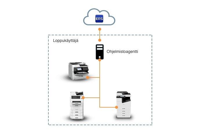 Ohjelma toimii asiakkaan verkkoon liitetyssä tietokoneessa mahdollistaen keskitetyn viestinnän Epson Remote Services -palveluiden kanssa.