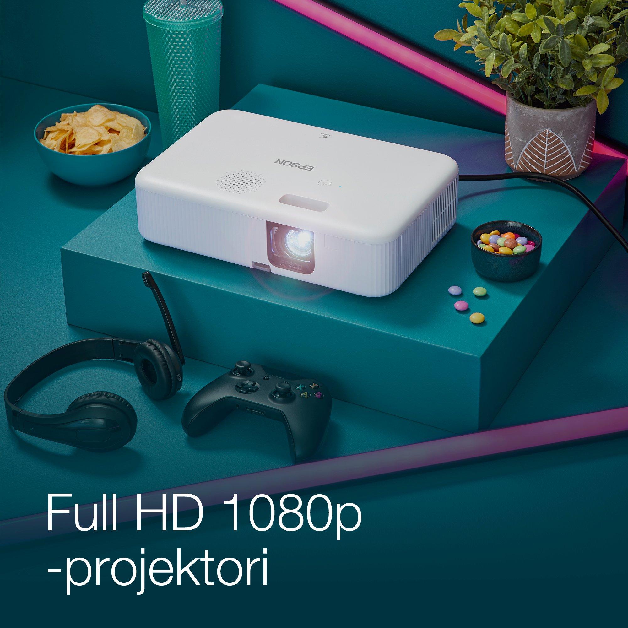 Uppoudu suosikkielokuviesi ja -peliesi maailmaan Full HD 1080p -projektorilla, jolla voit heijastaa jopa 391” näytön. 3LCD-tekniikan ansiosta projektori tuottaa jopa kolme kertaa kirkkaamman kuvan kuin kilpailijoiden vastaavat tuotteet².